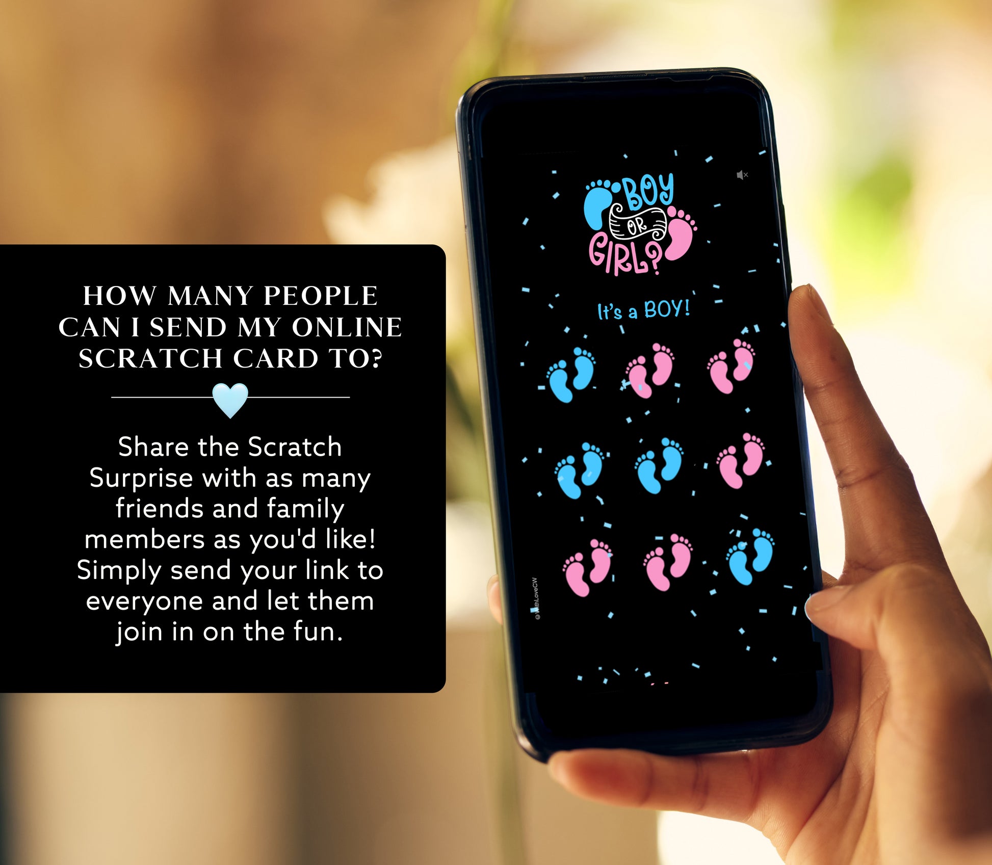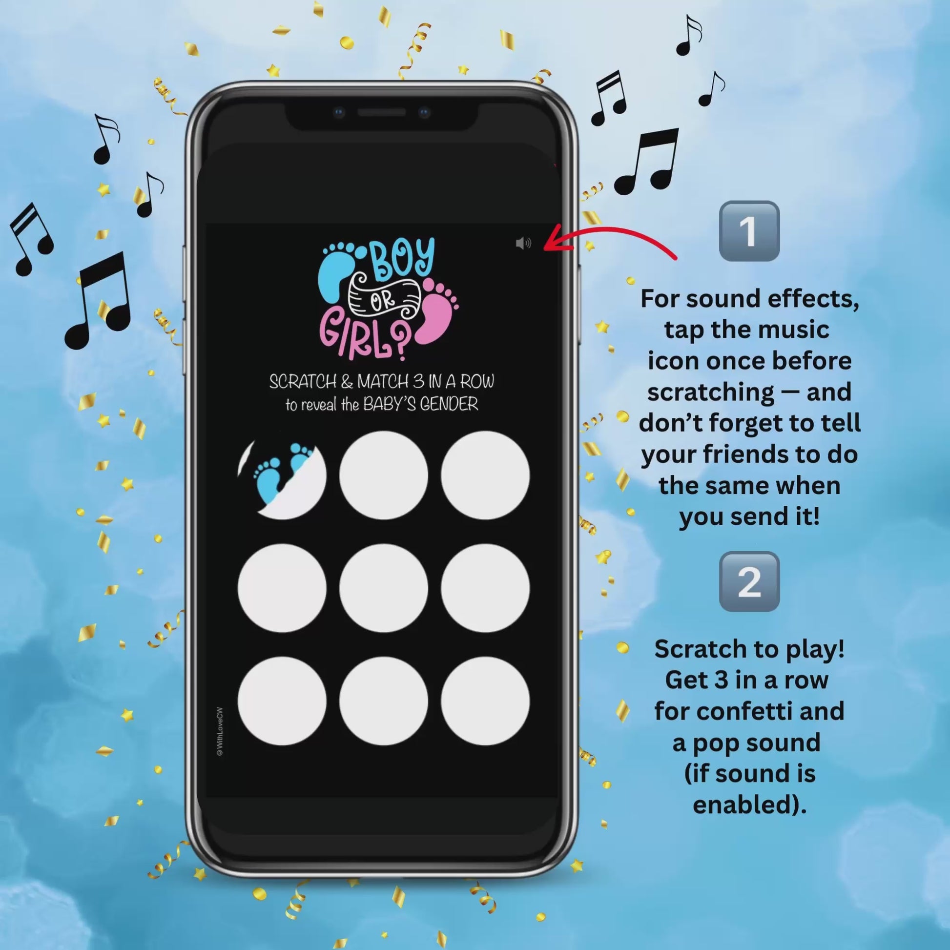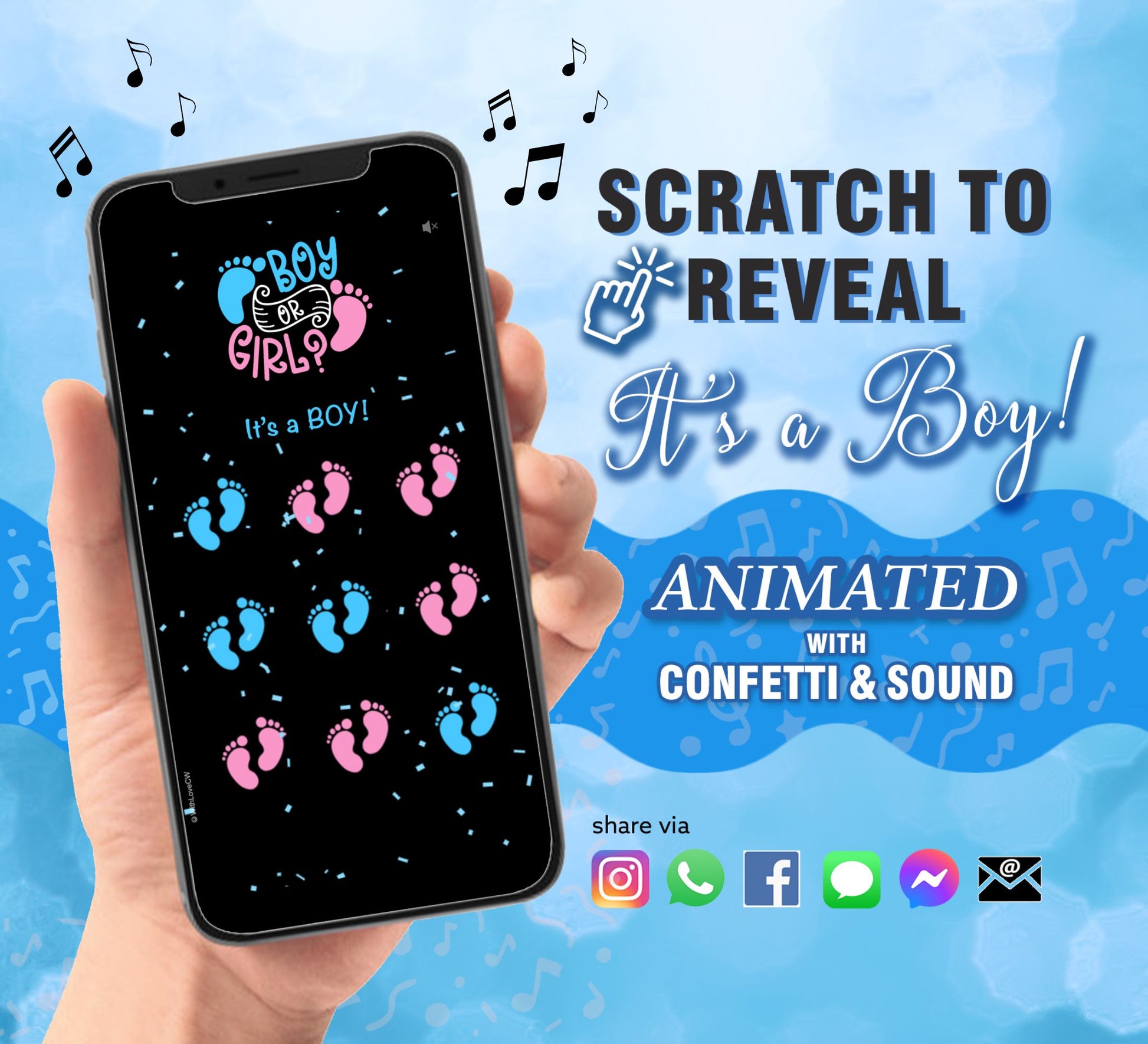 Baby Boy Gender Reveal Scratch Card, Digital Scratch Card, Surprise Announcement, Animated Confetti, Cute Pop Sound Effect