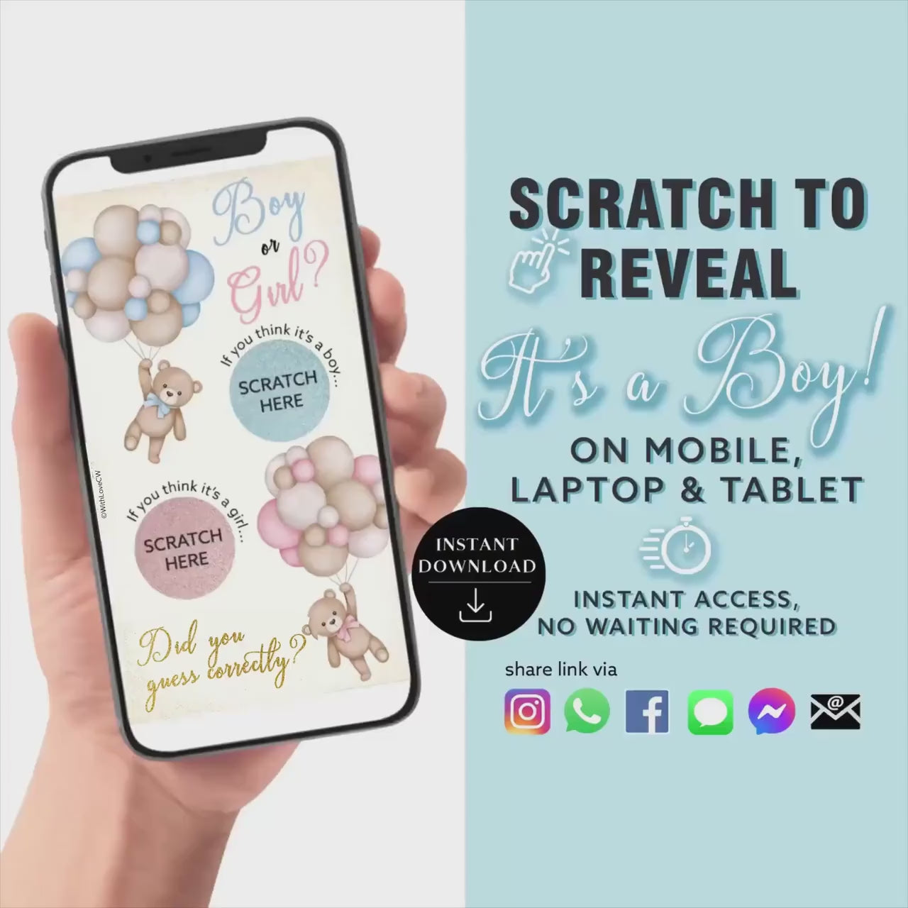 Baby Boy Gender Reveal Scratch Card, Digital Scratch Card, Surprise Announcement