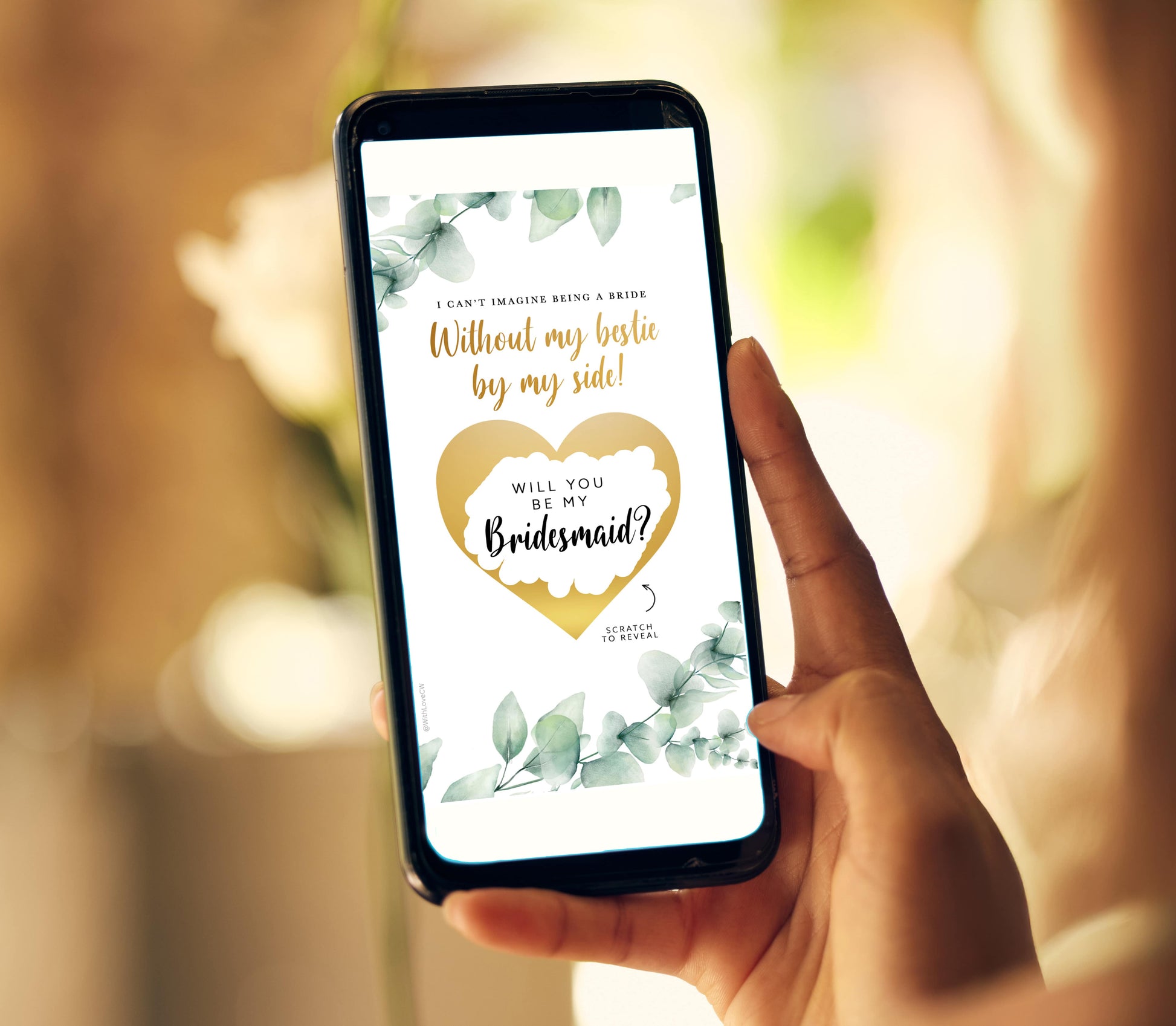 Bridesmaid Proposal Scratch Card, Digital Scratch Card, Be My Bridesmaid, Surprise Announcement card digital announcement