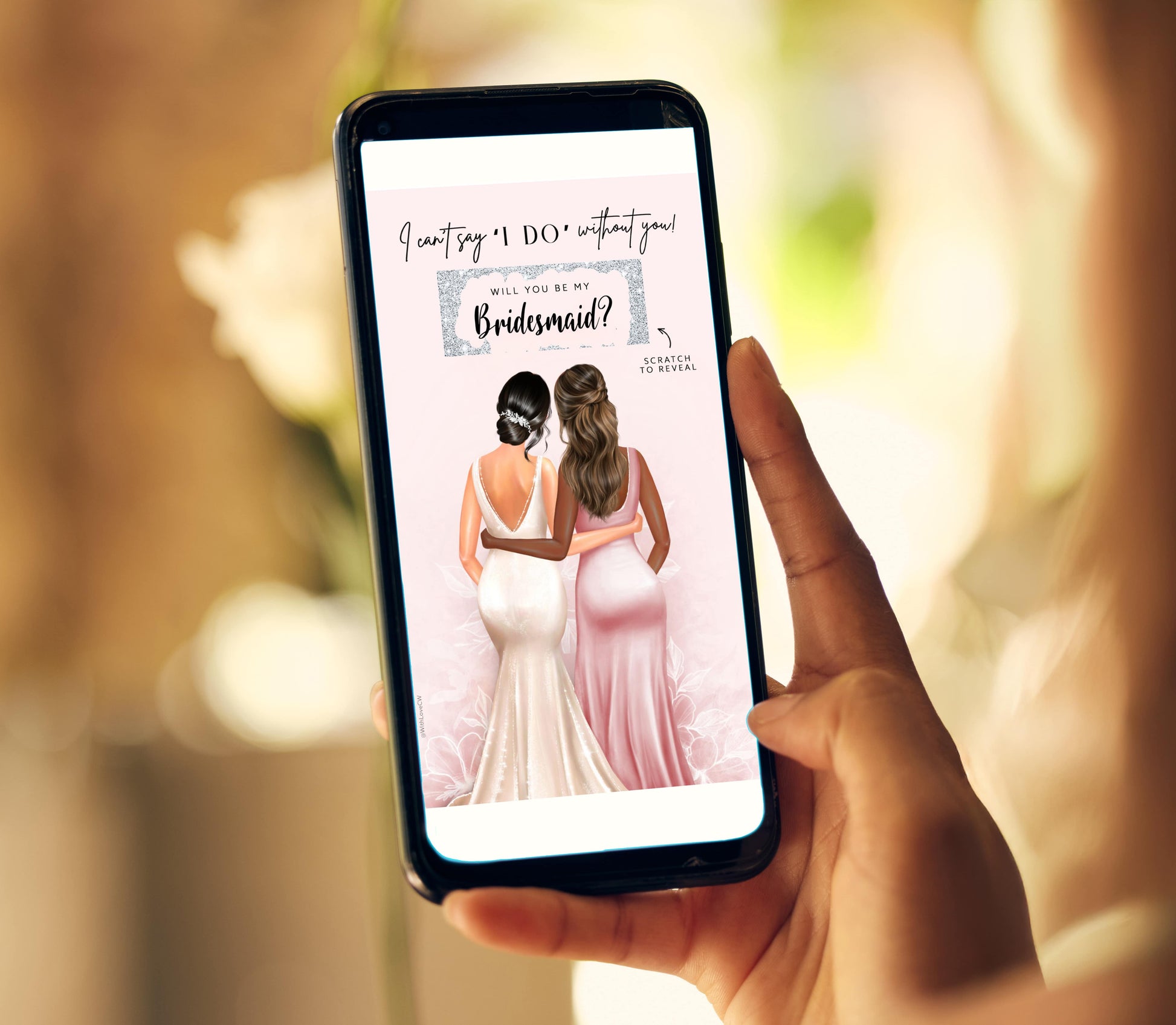 Bridesmaid Proposal Scratch Card, Digital Scratch Card, Be My Bridesmaid, Surprise Announcement card digital announcement