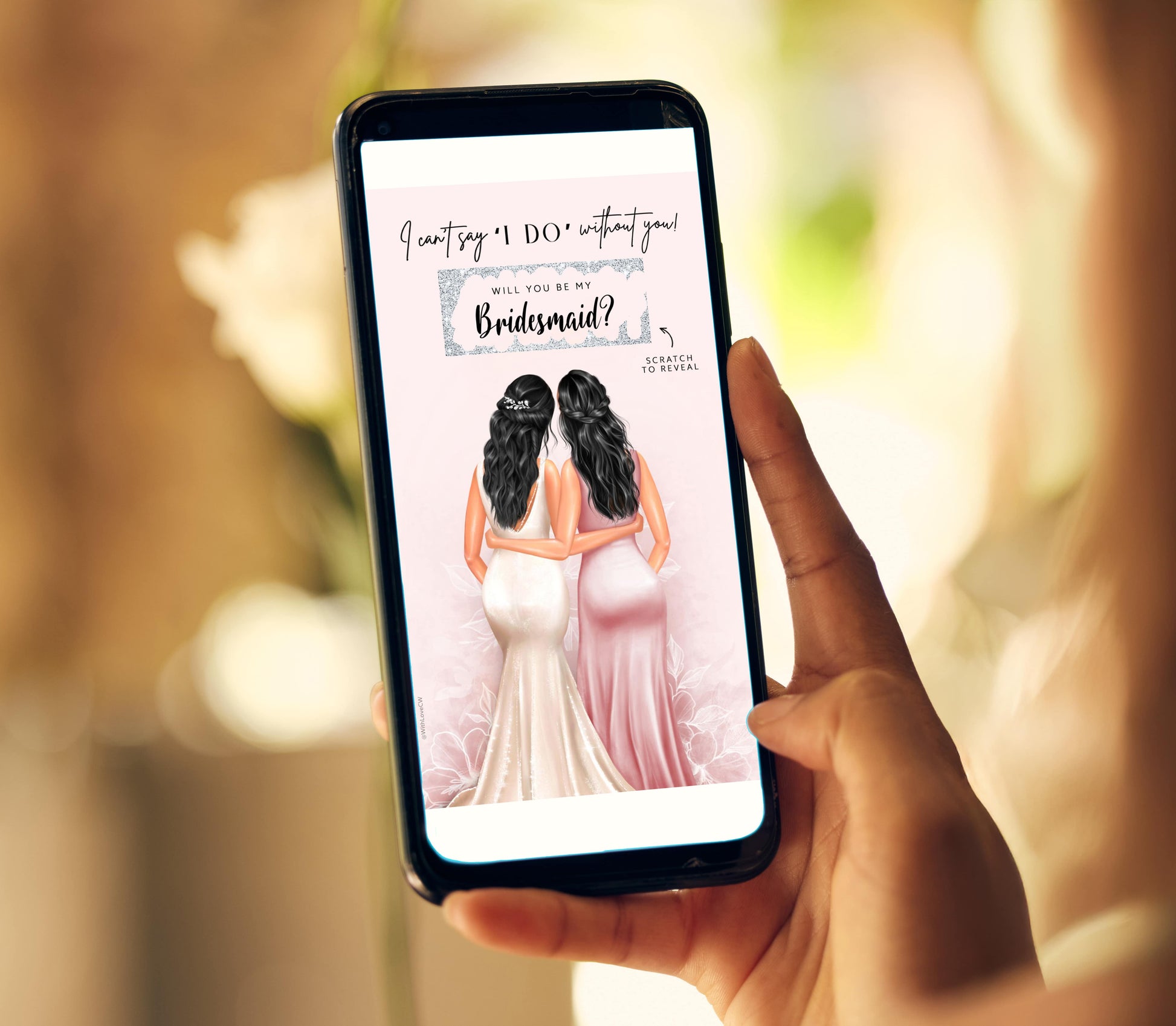 Bridesmaid Proposal Scratch Card, Digital Scratch Card, Be My Bridesmaid, Surprise Announcement card digital announcement