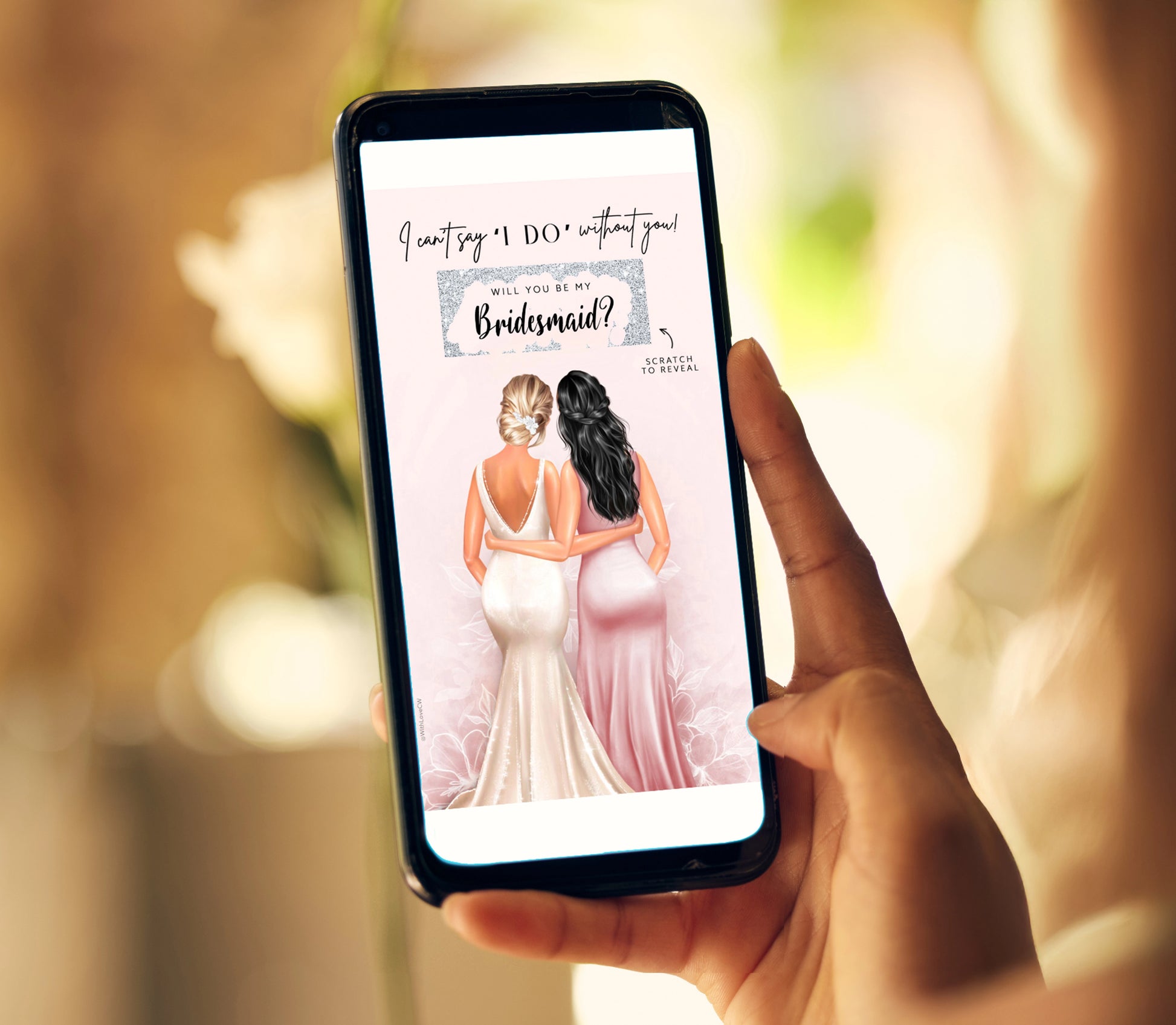 Bridesmaid Proposal Scratch Card, Digital Scratch Card, Be My Bridesmaid, Surprise Announcement card digital announcement
