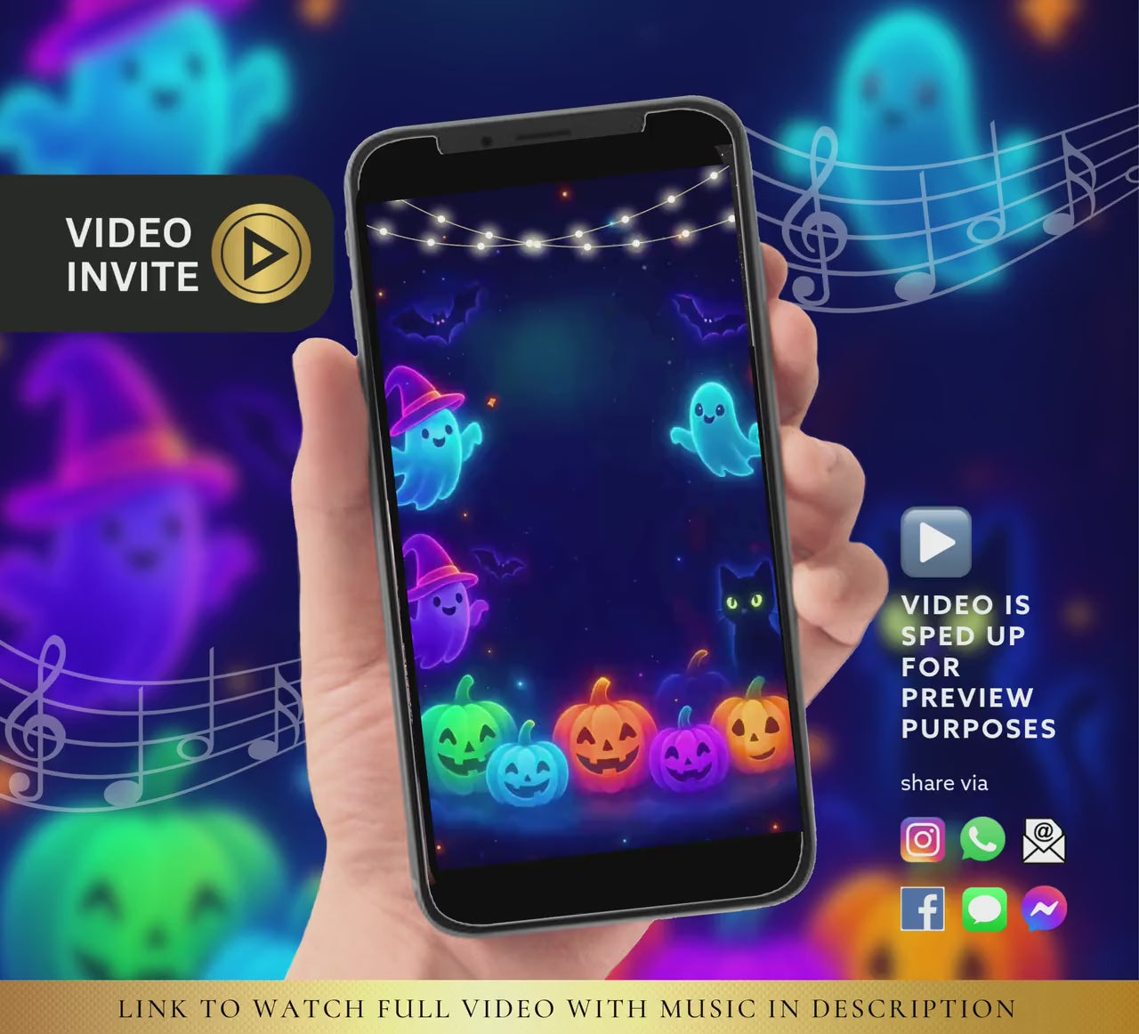 👻 This animated video invitation is perfect for a neon glow Halloween bash, blacklight party, or spooky night out. Fully editable and easy to download, it’s designed to light up the dark and thrill your guests. Complete with glowing effects and eerie vibes, it sets the perfect tone for a frightfully fun night!