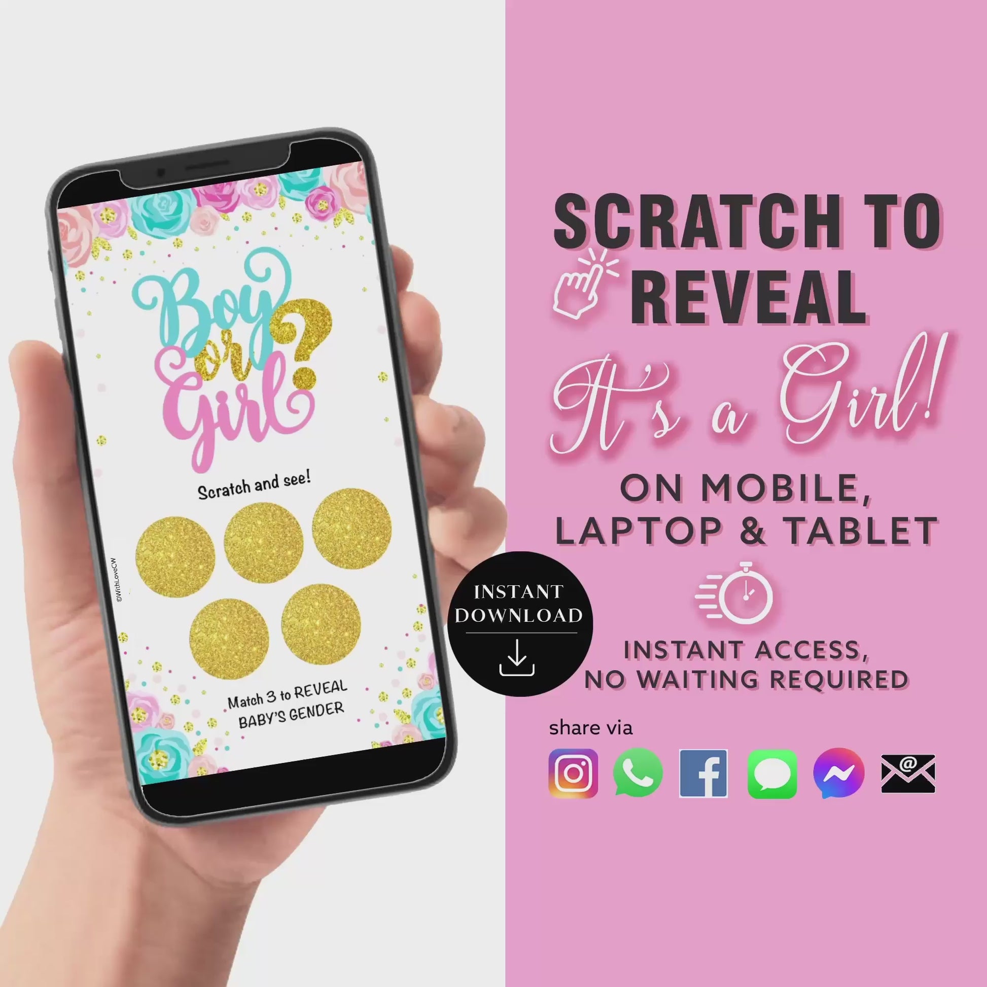 Baby Girl Gender Reveal Scratch Card, Digital Scratch Card, Surprise Announcement