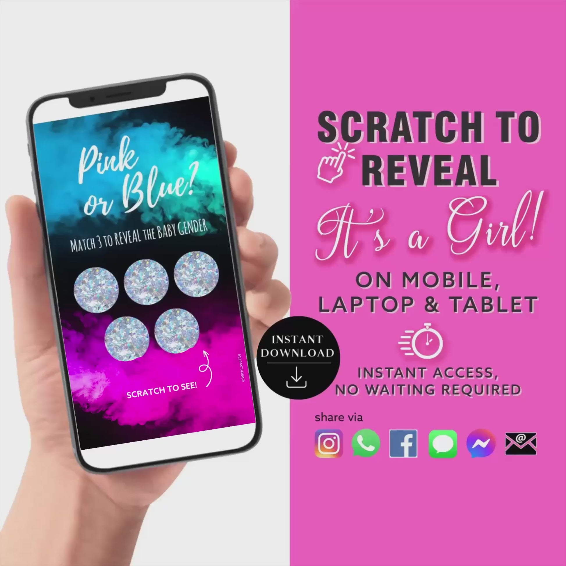 Baby Girl Gender Reveal Scratch Card, Digital Scratch Card, Surprise Announcement