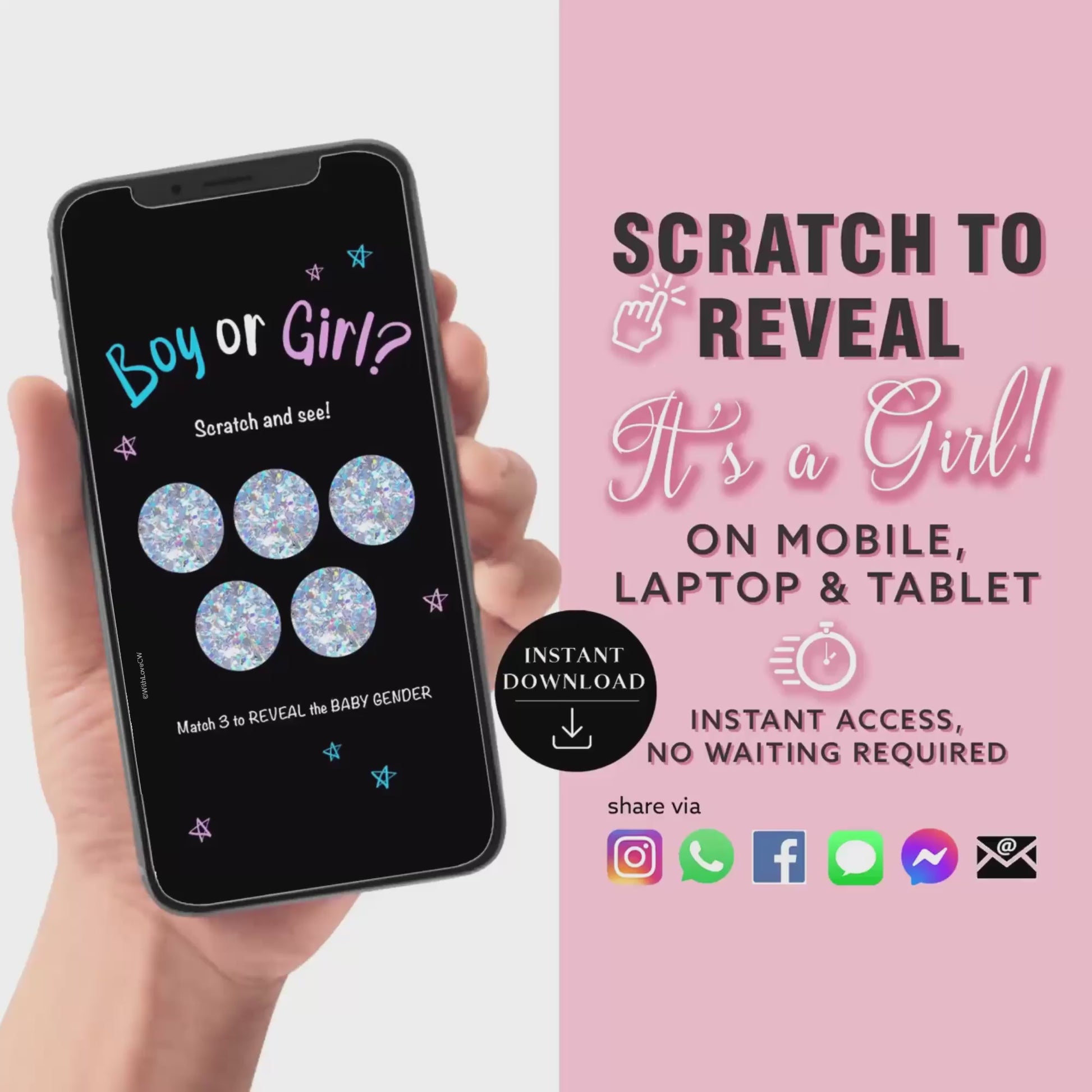Baby Girl Gender Reveal Scratch Card, Digital Scratch Card, Surprise Announcement