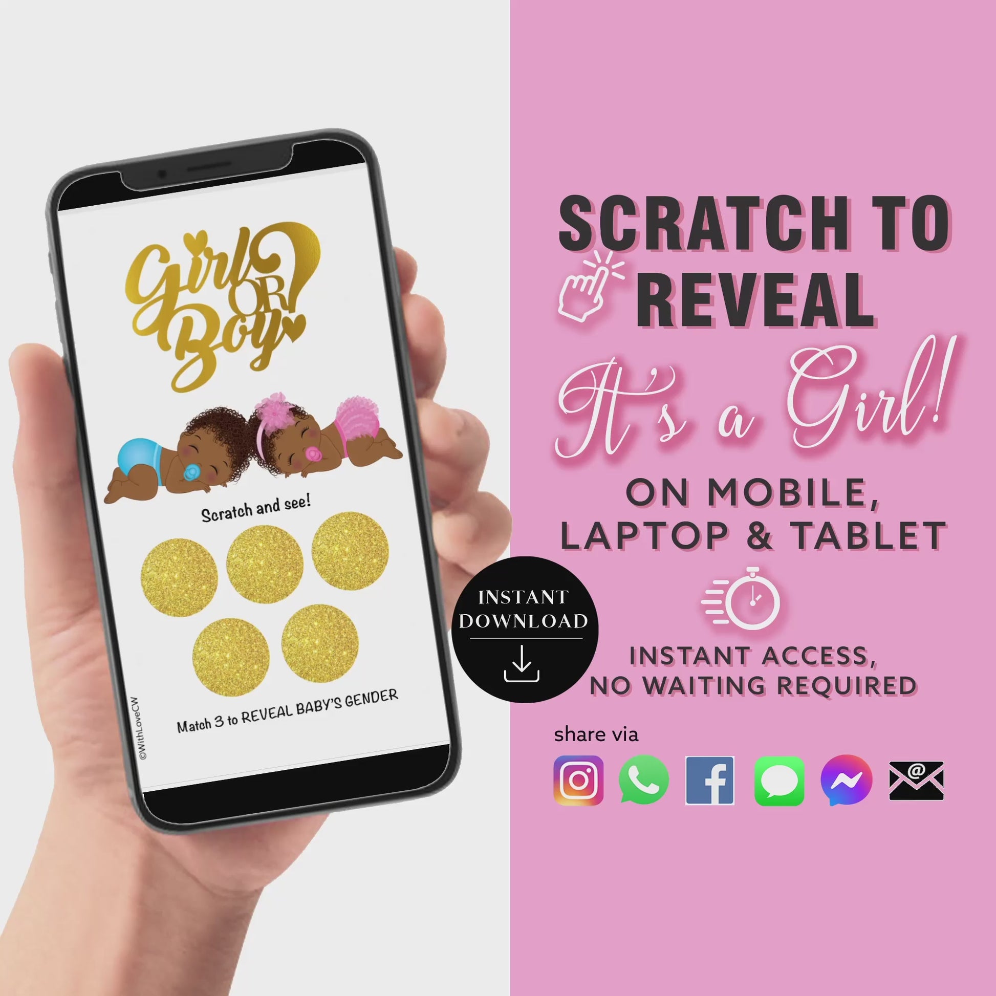 Baby Girl Gender Reveal Scratch Card, Digital Scratch Card, Surprise Announcement