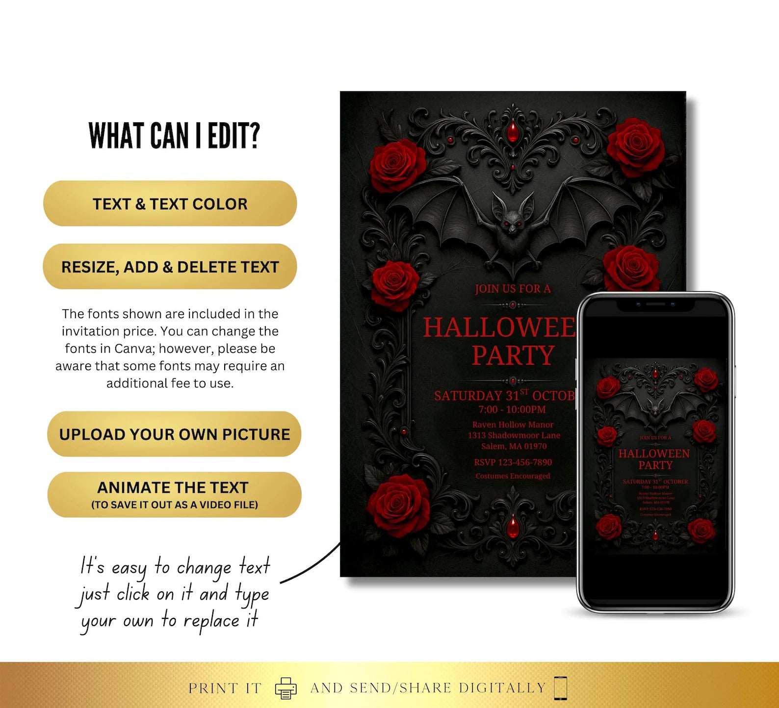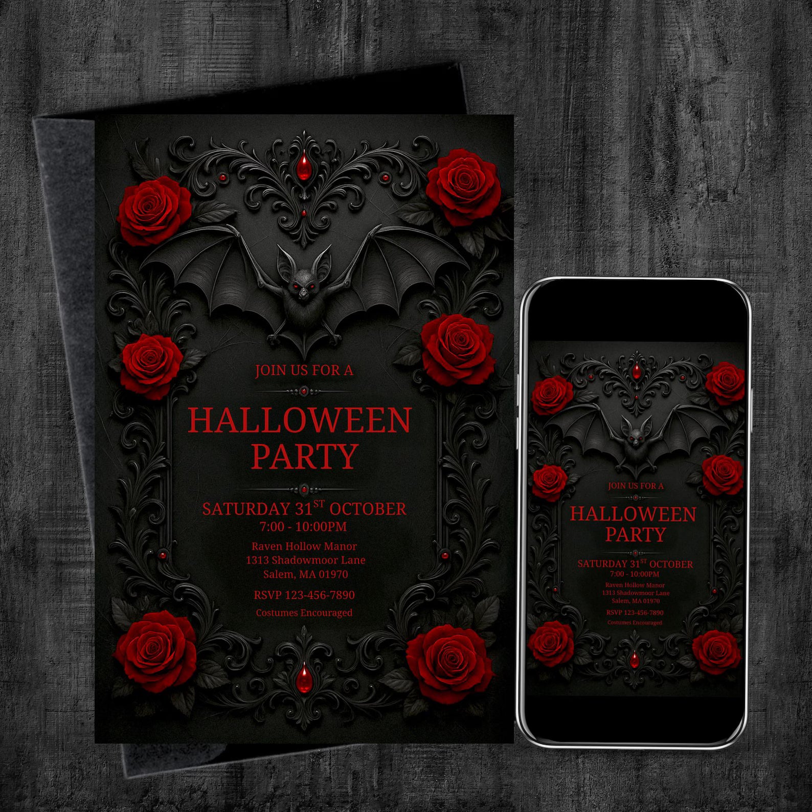 Halloween Gothic Bat Decor Invite Digital and Printable
