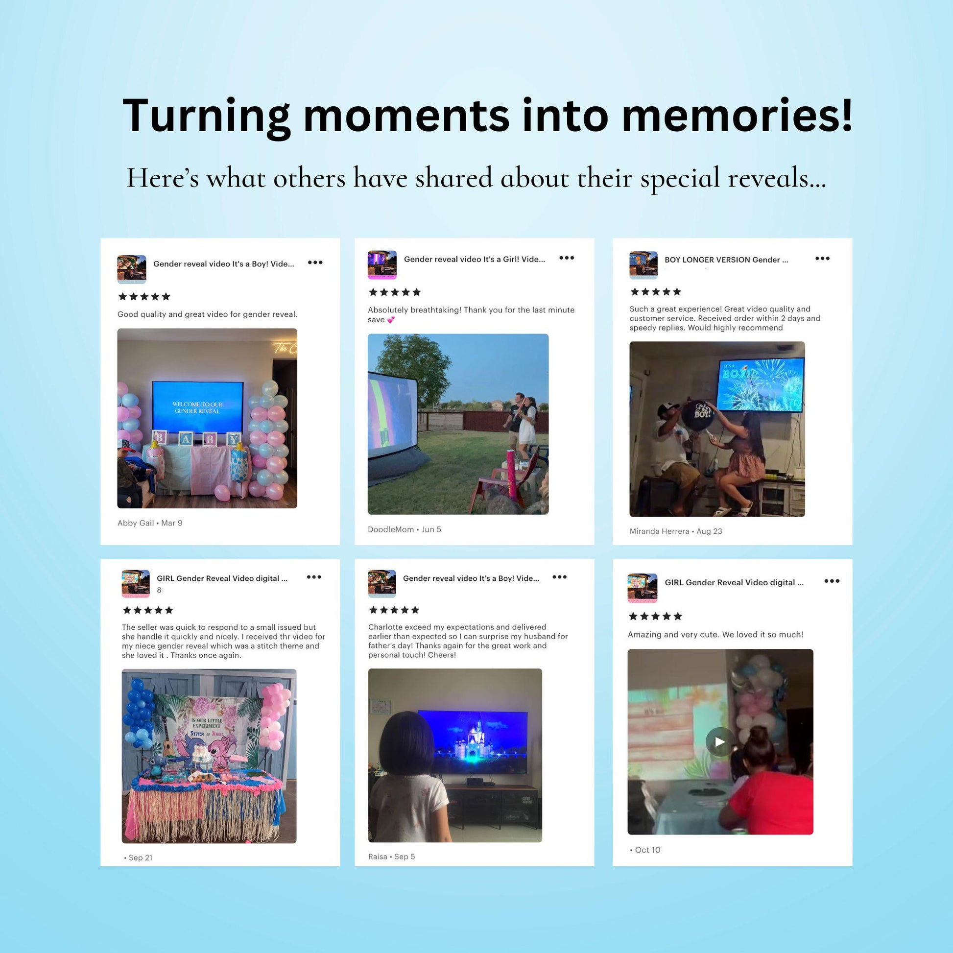 As seen on TikTok! Our digital gender reveal videos are perfect for sharing on your phone, TV, or projector — a sweet surprise for friends and family, near or far 🎥