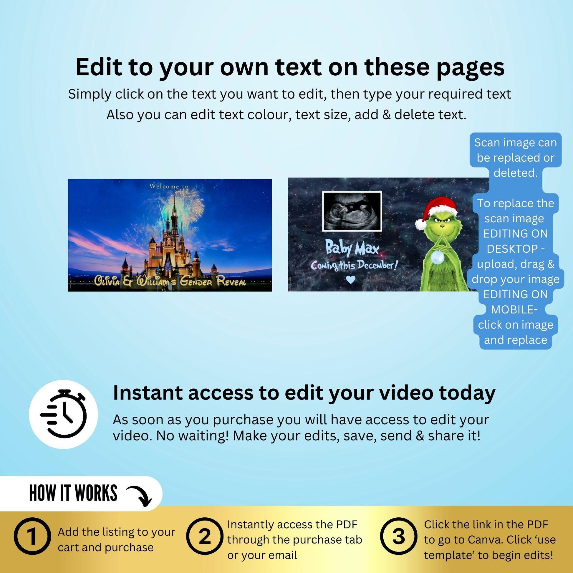 ✨ After completing your purchase, you'll immediately receive a downloadable PDF containing a link to edit the video file.