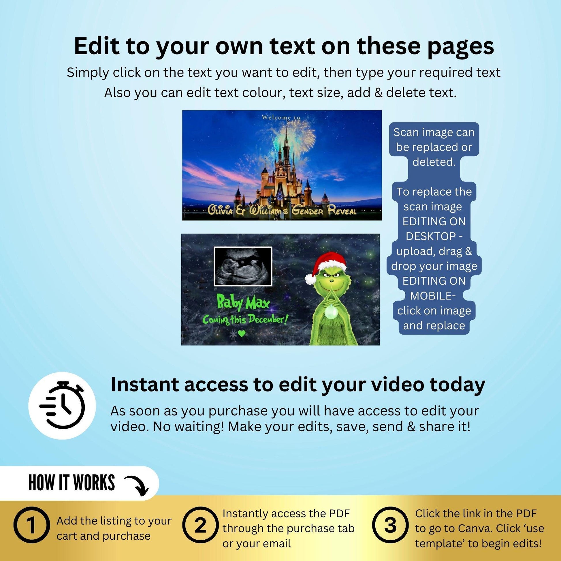 ✨ After completing your purchase, you'll immediately receive a downloadable PDF containing a link to edit the video file.