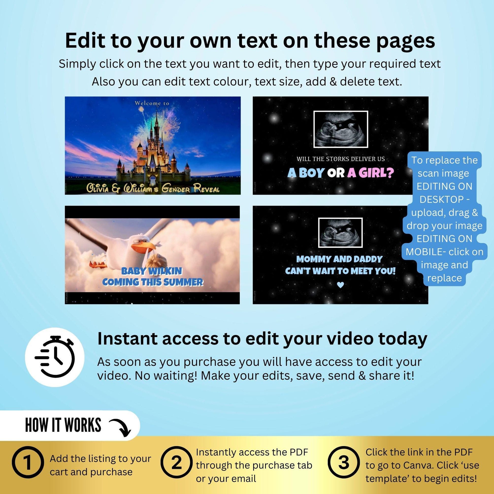 ✨ After completing your purchase, you'll immediately receive a downloadable PDF containing a link to edit the video file.