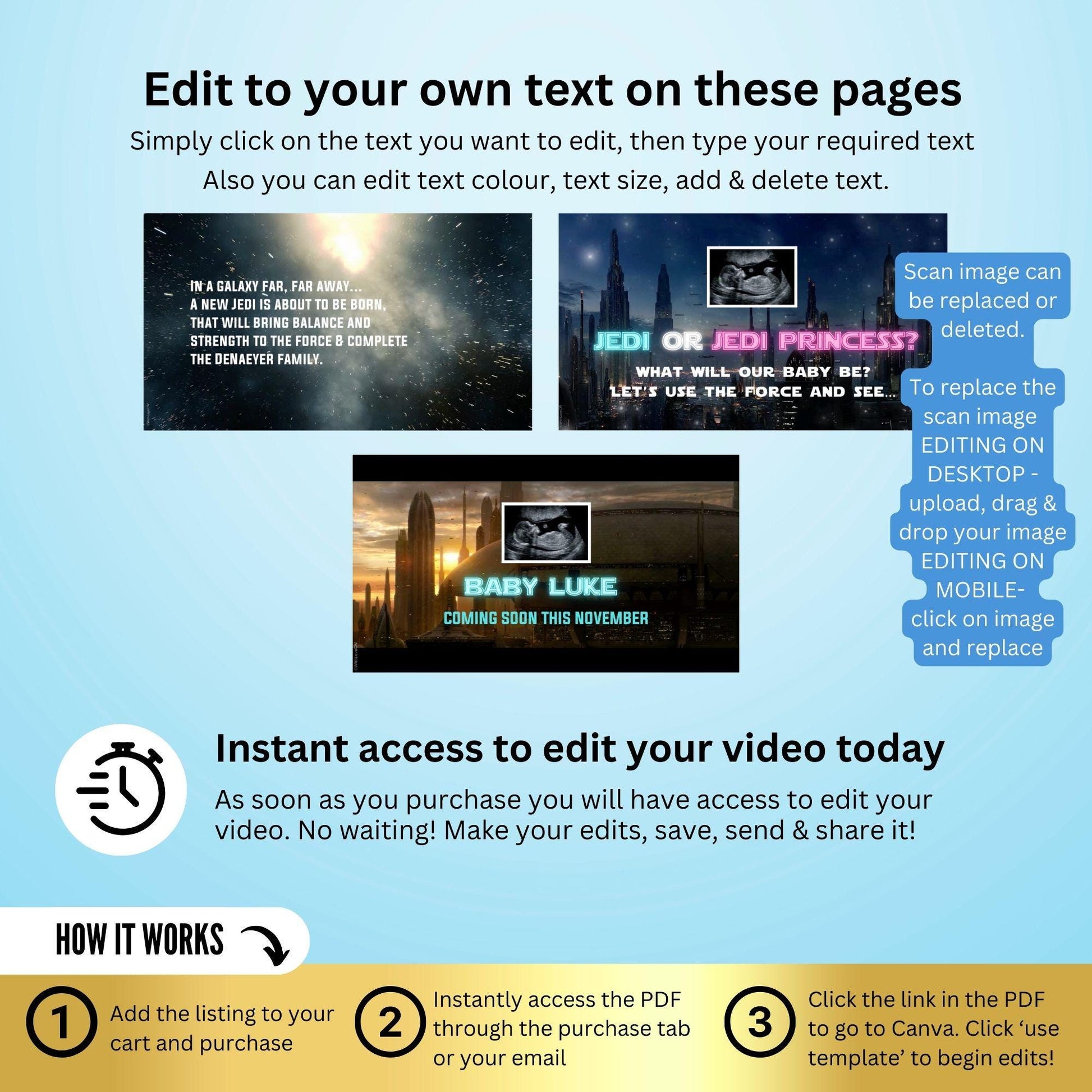 After purchase you will receive a link from Etsy which contains the edit link. Please note you will need to make a Canva account to edit this template, it's free & easy!