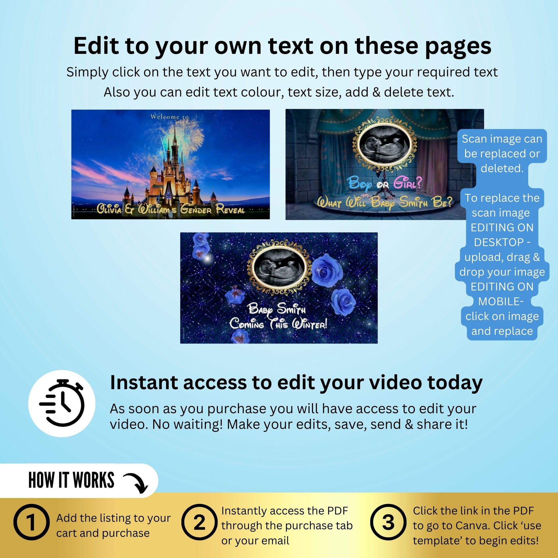 ✨ After completing your purchase, you'll immediately receive a downloadable PDF containing a link to edit the video file.