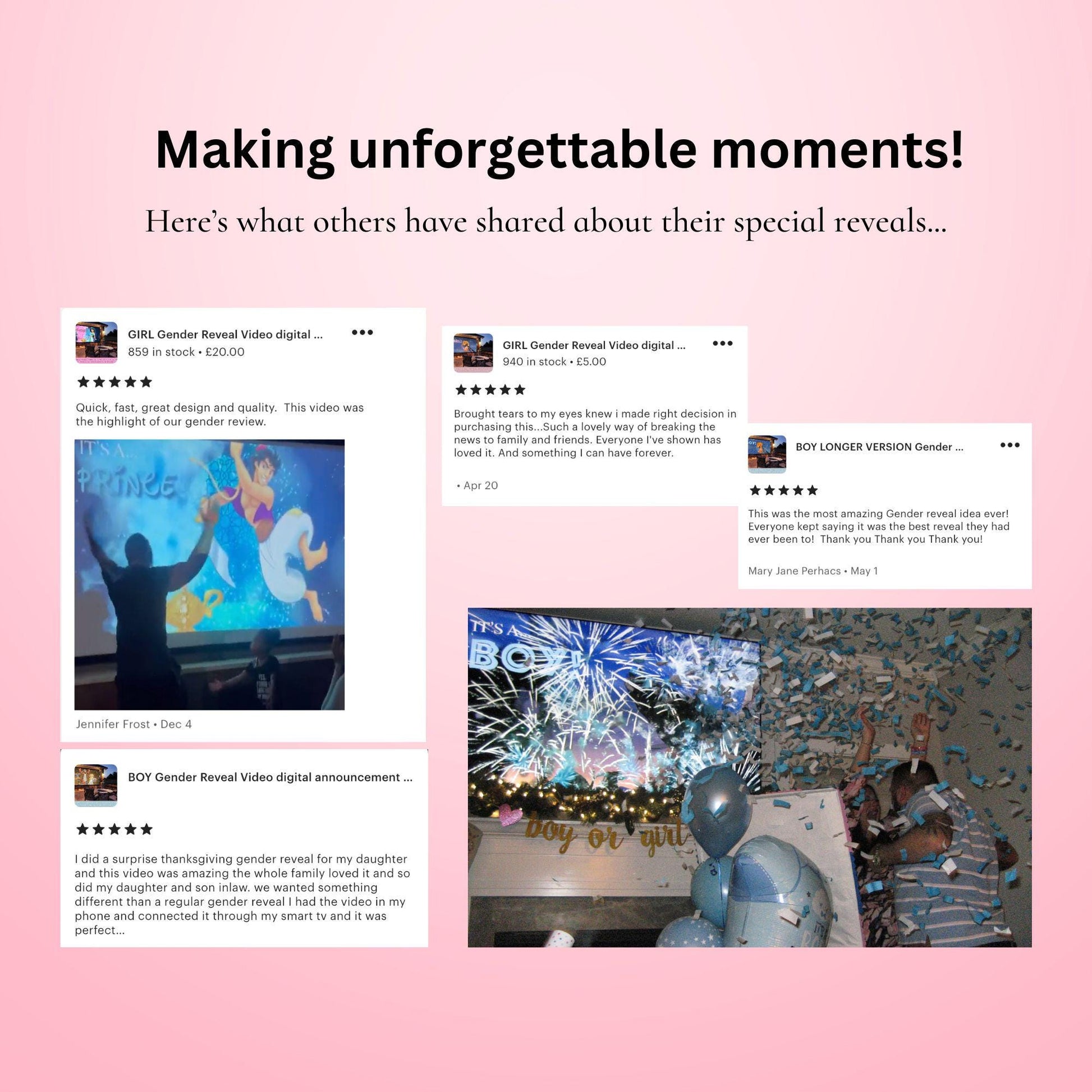 As seen on TikTok! Our digital gender reveal videos are perfect for sharing on your phone, TV, or projector — a sweet surprise for friends and family, near or far 🎥