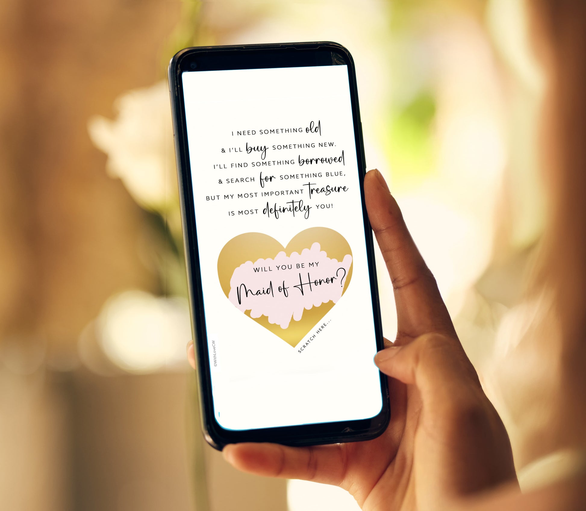 Maid Of Honor Proposal Scratch Card, Digital Scratch Card, Be My MOH, Surprise Announcement card digital announcement
