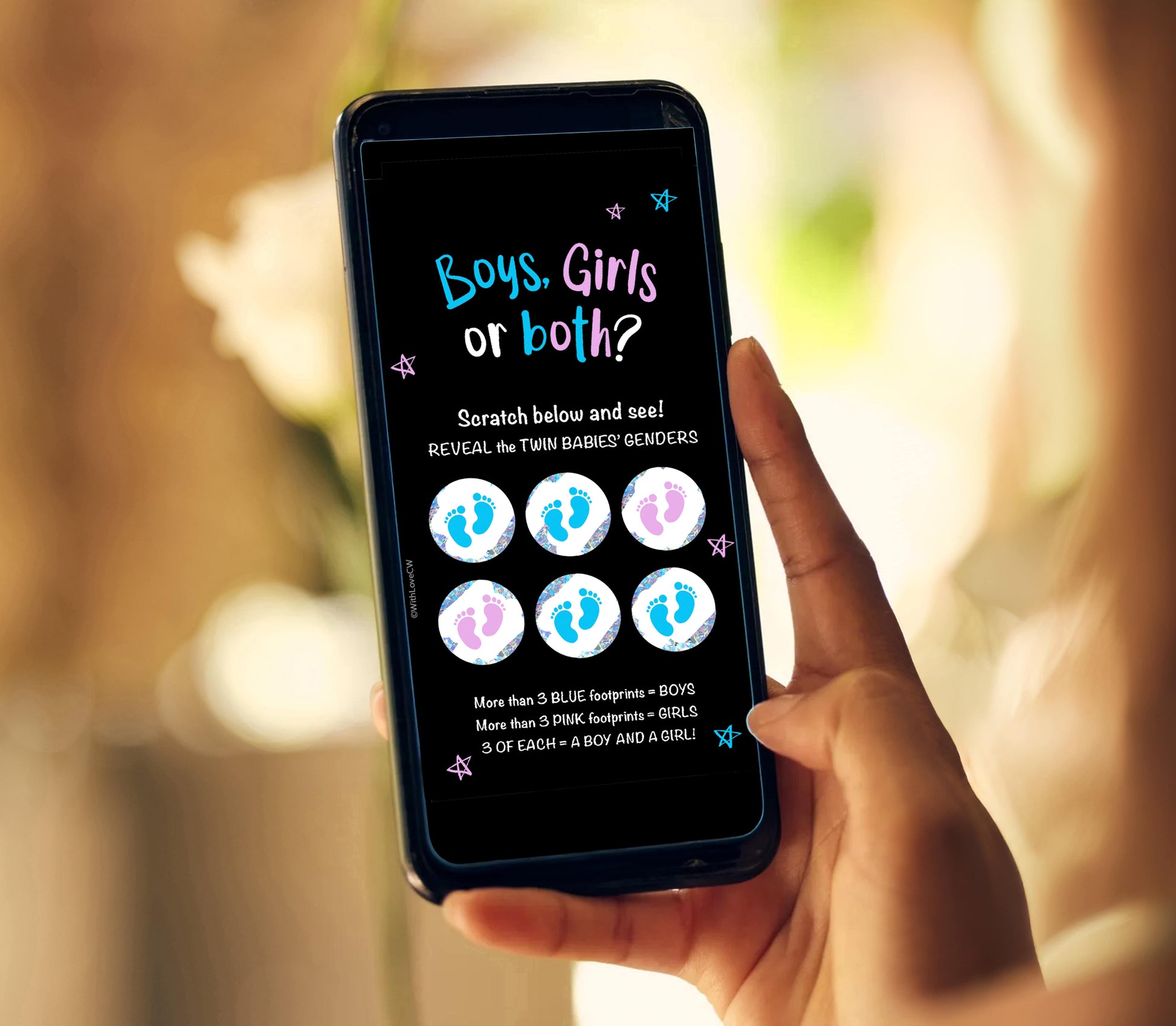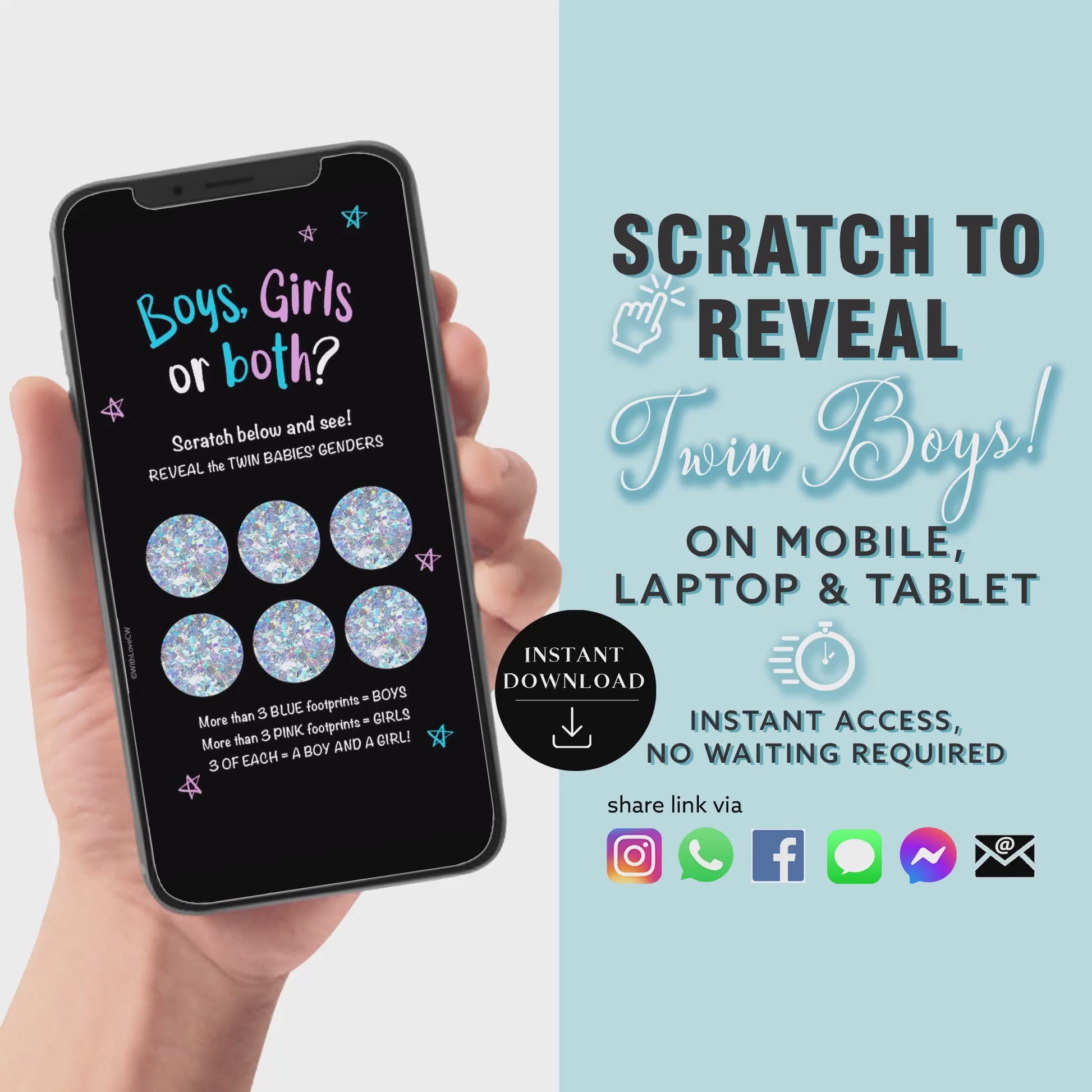 Baby Twin Boys Gender Reveal Scratch Card, Digital Scratch Card, Surprise Announcement