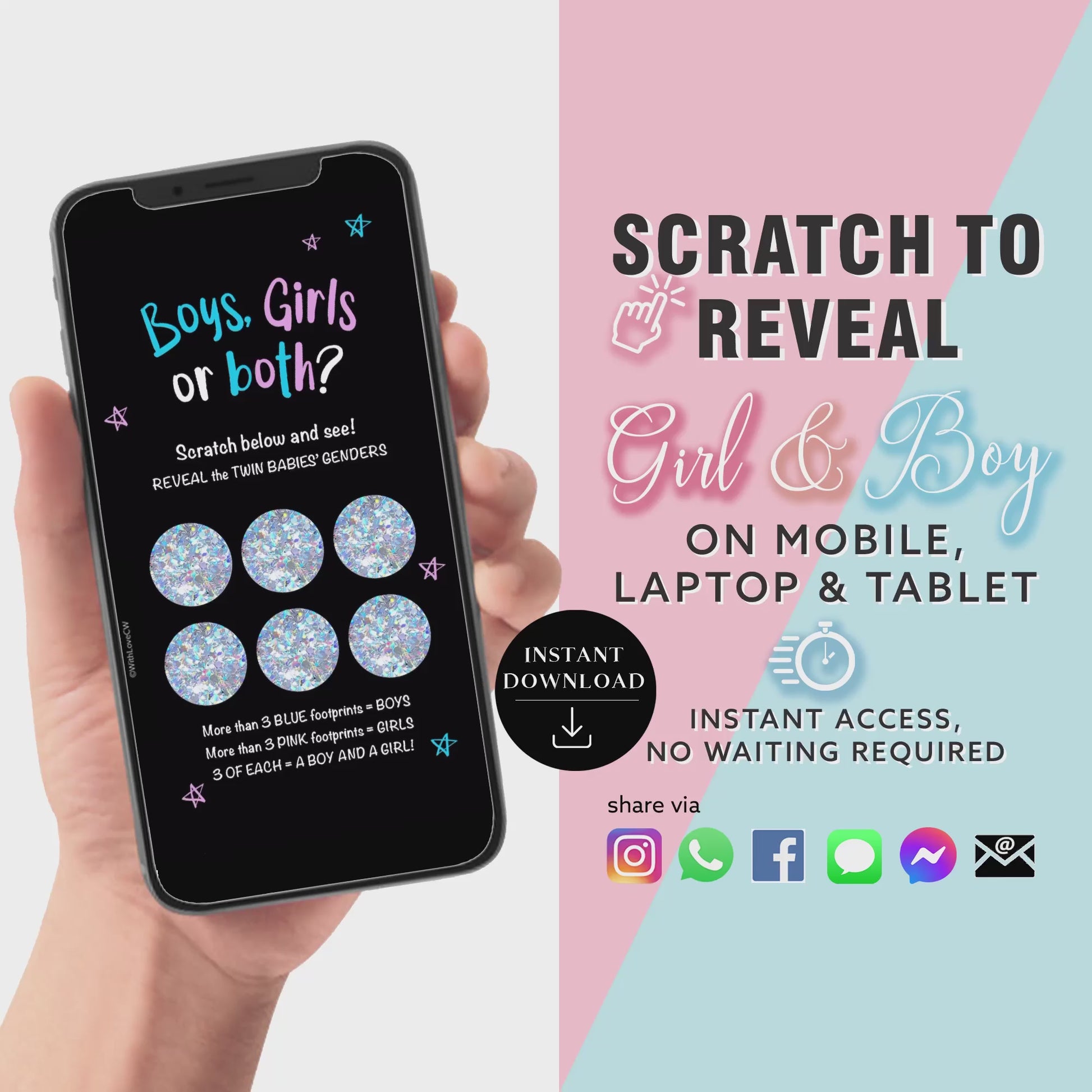 Baby Twin Boy & Girl Gender Reveal Scratch Card, Digital Scratch Card, Surprise Announcement