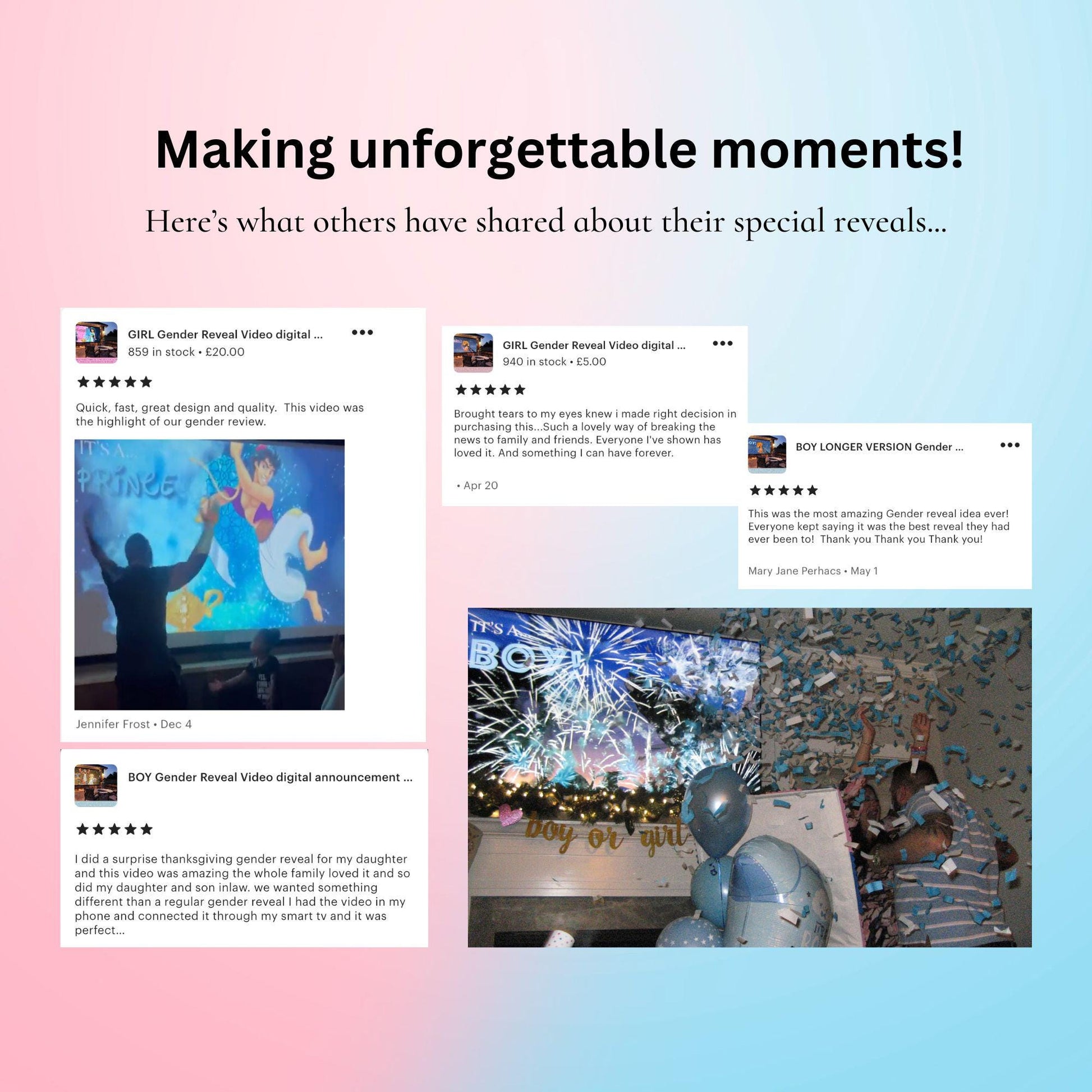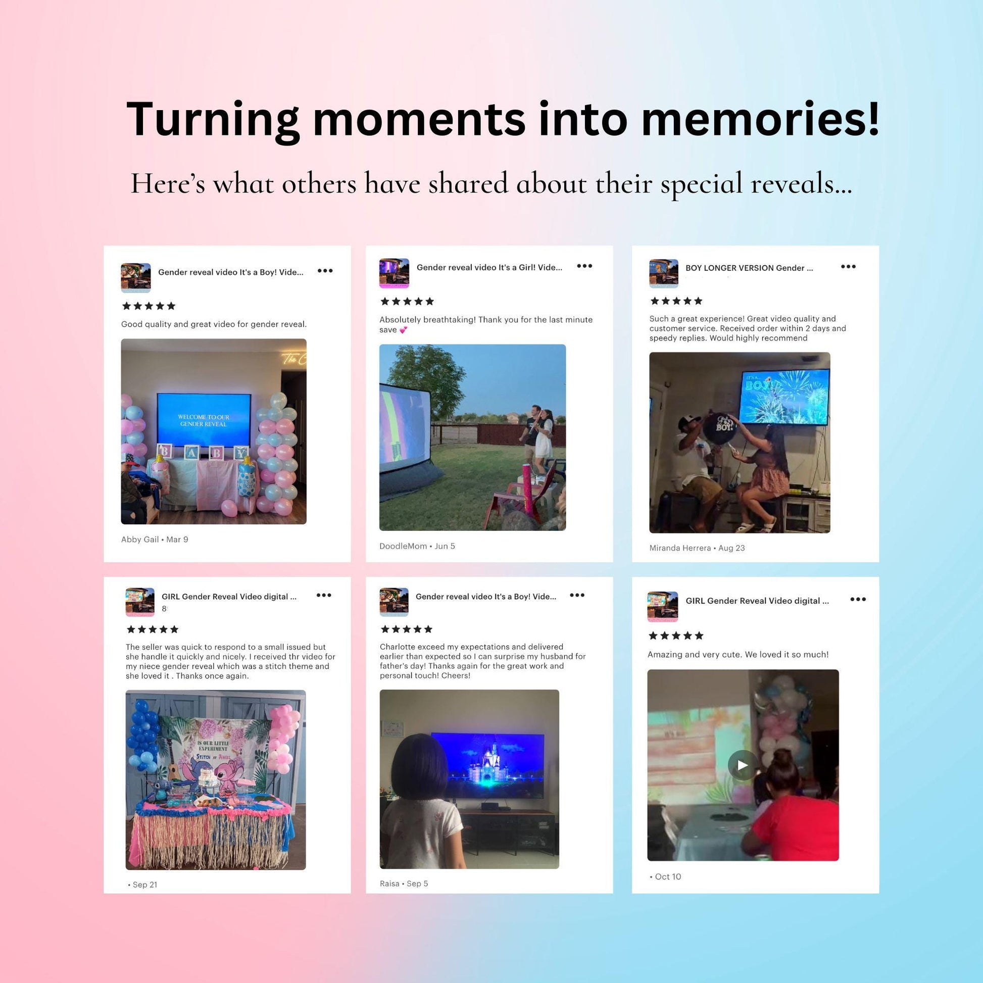 As seen on TikTok! Our digital gender reveal videos are perfect for sharing on your phone, TV, or projector — a sweet surprise for friends and family, near or far 🎥